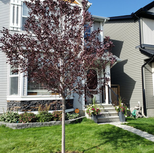 In the spring the leafs start out green, but as the season moves on (around June) they turn a vibrant purple colour.